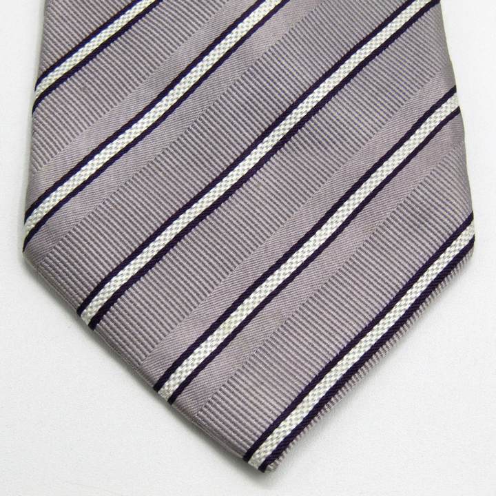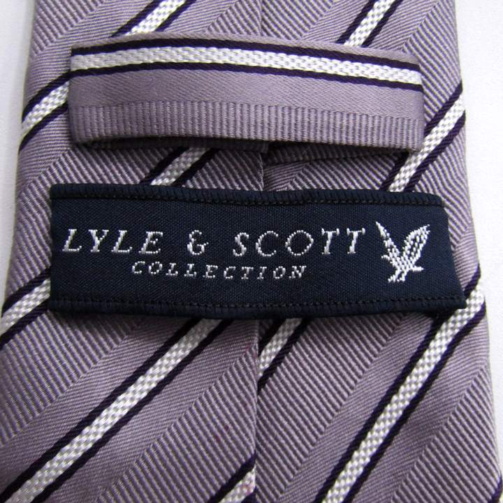 ライルアンドスコット ブランド ネクタイ ストライプ柄 シルク PO メンズ パープルグレー LYLE&SCOTT 【中古】