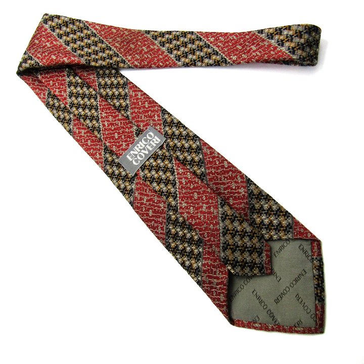 エンリコ・コベリ ブランド ネクタイ ストライプ柄 シルク イタリア製 ハンドメイド PO メンズ レッド系 Enrico Coveri 【中古】