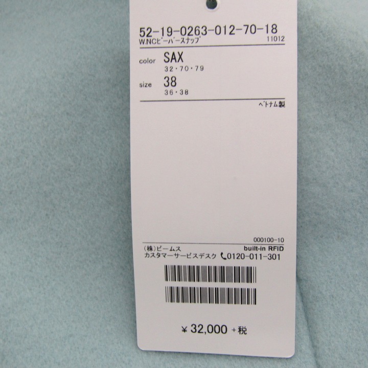 ビームスライツ ノーカラーコート ウールコート アウター 未使用品 レディース 38サイズ 水色 BEAMS LIGHTS 【中古】