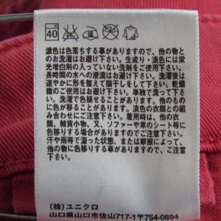 ユニクロ パンツ 大きいサイズ ストレッチ ボトムス レディース 32(82cm)サイズ ピンク UNIQLO 【中古】
