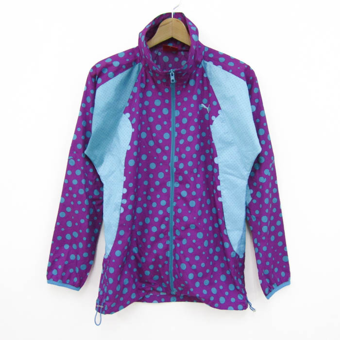 プーマ ブルゾン ナイロンジャケット スポーツウエア ドット柄 アウター レディース Sサイズ パープル×水色 PUMA 【中古】