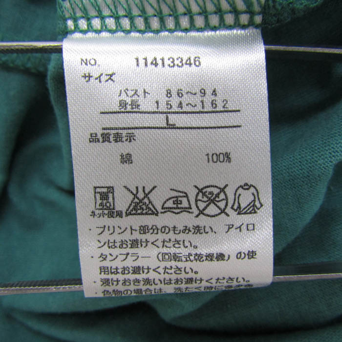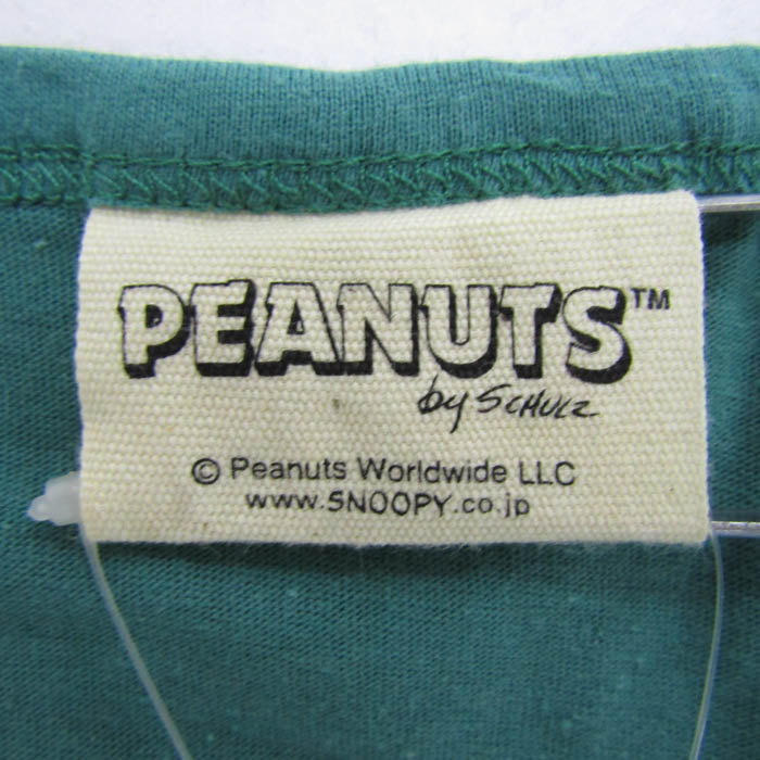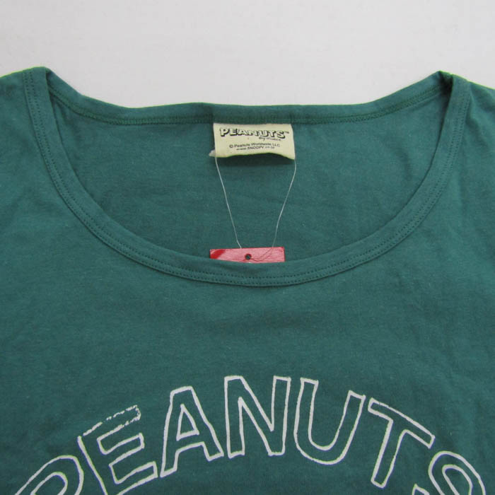ピーナッツ 半袖Tシャツ 未使用 コットン100% スヌーピー トップス レディース Lサイズ グリーン×ホワイト PEANUTS 【中古】