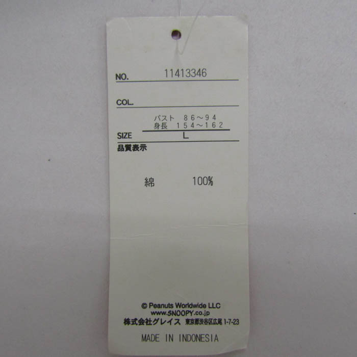 ピーナッツ 半袖Tシャツ 未使用 コットン100% スヌーピー トップス レディース Lサイズ グリーン×ホワ...