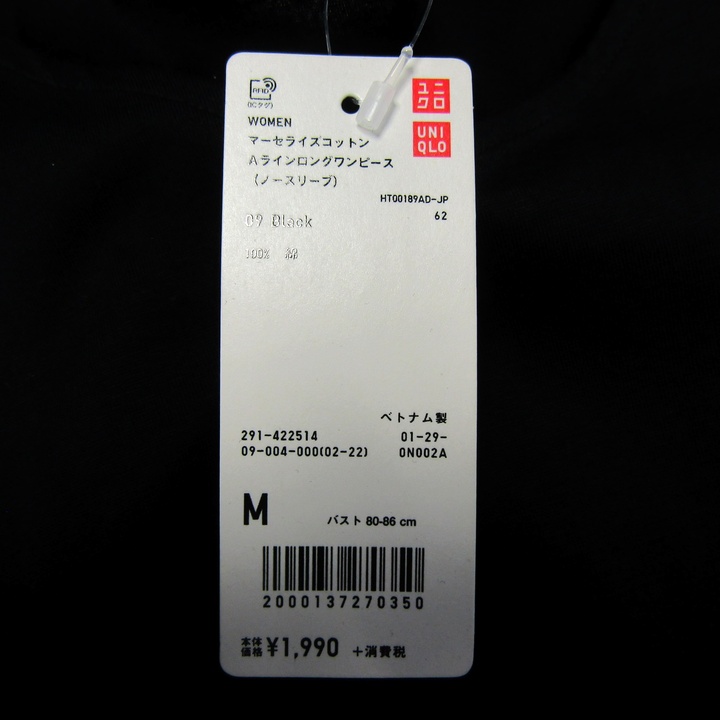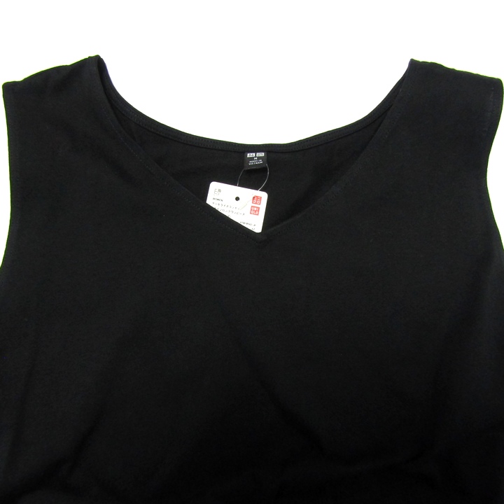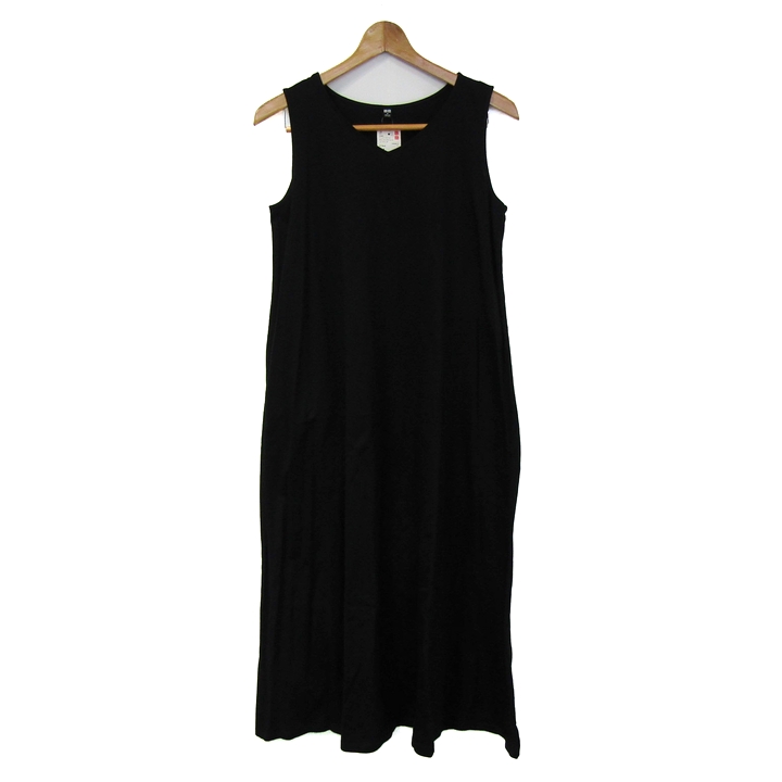 ユニクロ ロングワンピース ノースリーブ 未使用 コットン100% トップス 黒 レディース Mサイズ ブラック UNIQLO 【中古】