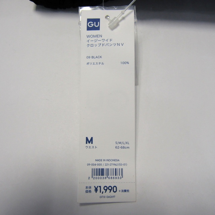 ジーユー イージーワイドクロップドパンツ 未使用 ボトムス 黒 レディース Mサイズ ブラック GU 【中古】