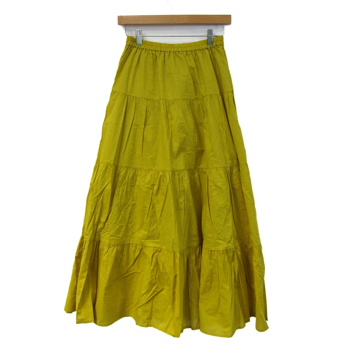 ジーユー ティアードフレアロングスカート 未使用 コットン100% ボトムス レディース Lサイズ イエロー GU 【中古】