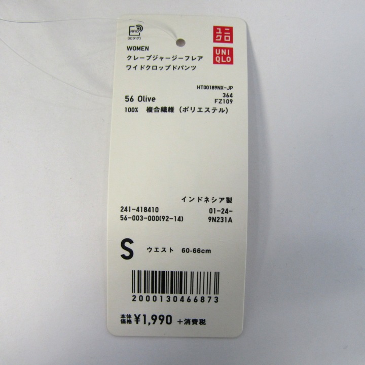 ユニクロ クレープジャージーフレアワイドクロップドパンツ 未使用 ボトムス レディース Sサイズ オリー...