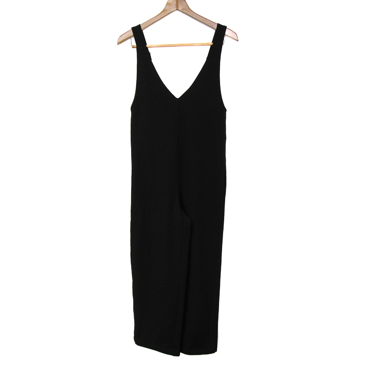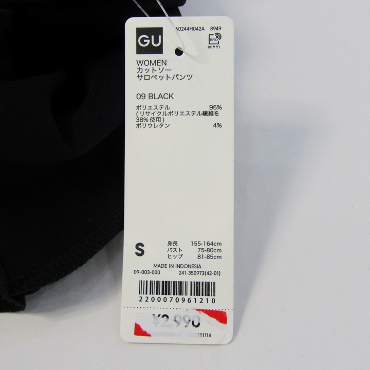 ジーユー カットソーサロペットパンツ ストレッチ 未使用 黒 レディース Sサイズ ブラック GU 【中古】