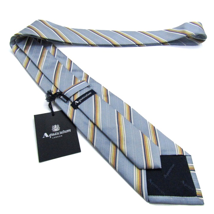 アクアスキュータム ブランド ネクタイ ストライプ柄 シルク 未使用タグ付 PO メンズ ブルー Aquascutu...