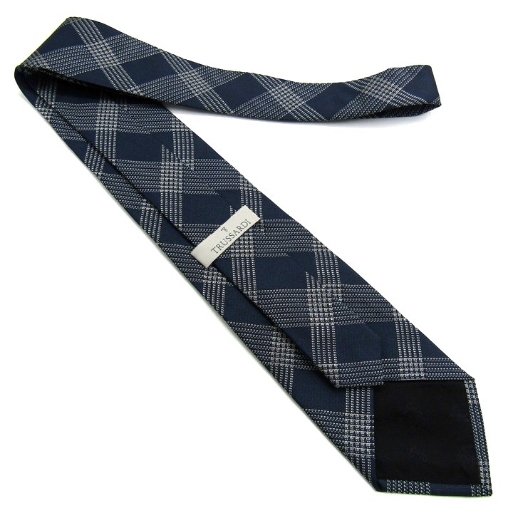 トラサルディ ブランド ネクタイ チェック柄 グレイハウンド シルク イタリア製 PO メンズ ネイビー TR...