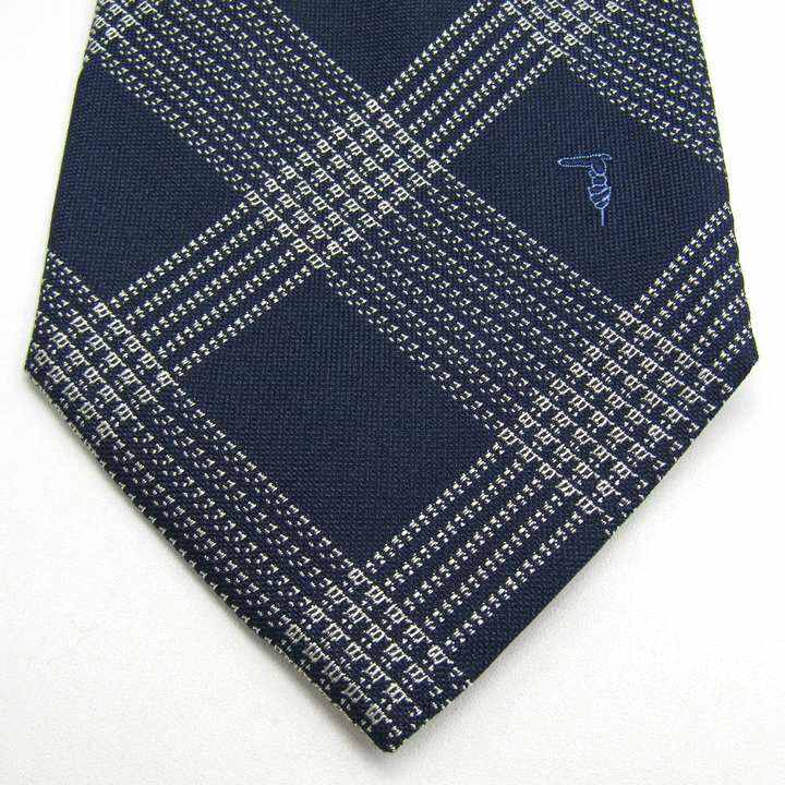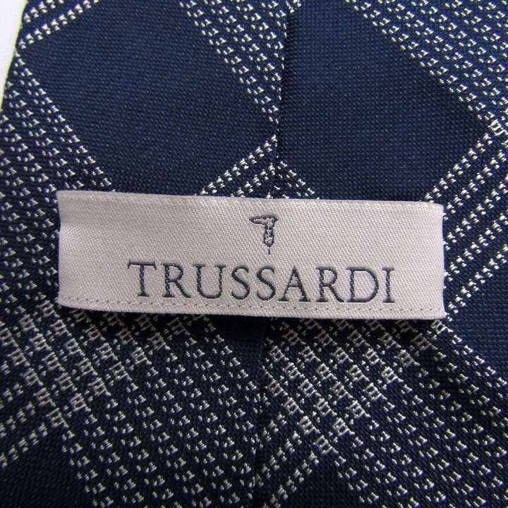 トラサルディ ブランド ネクタイ チェック柄 グレイハウンド シルク イタリア製 PO メンズ ネイビー TRUSSARDI 【中古】
