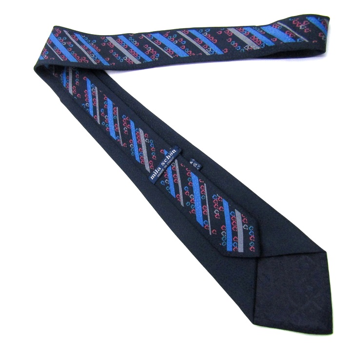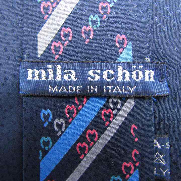 ミラショーン ブランド ネクタイ ストライプ柄 ロゴグラム シルク イタリア製 PO メンズ ネイビー mila schon 【中古】