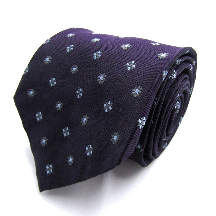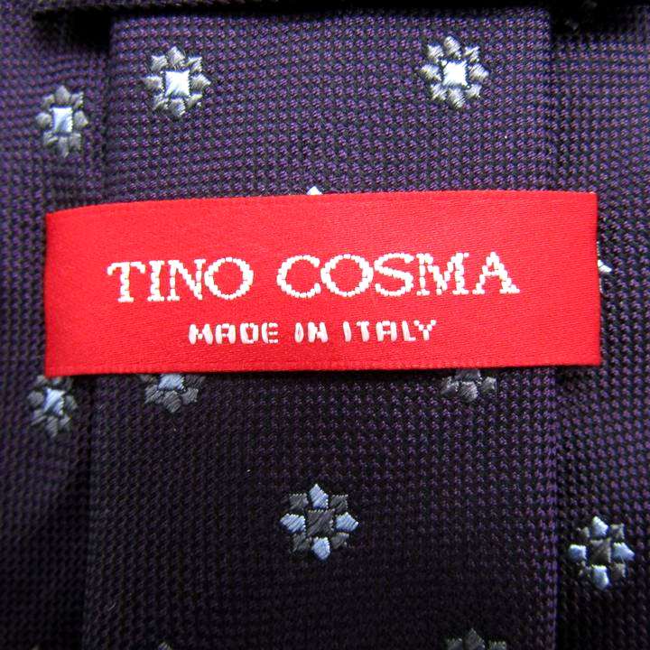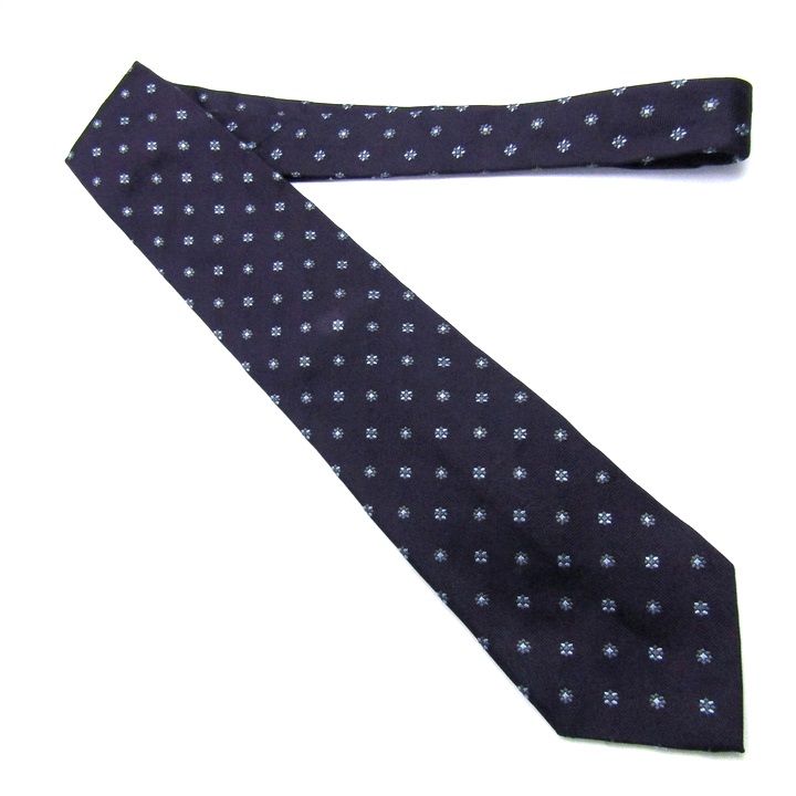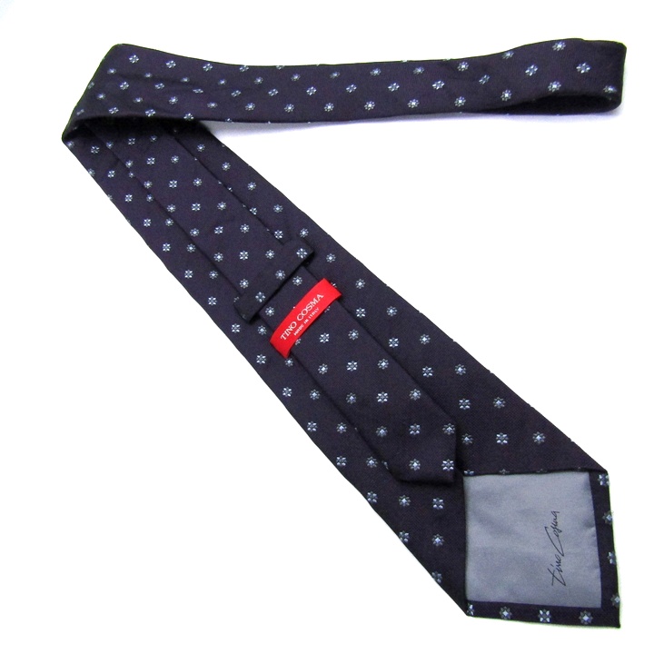 ティノコズマ ブランド ネクタイ ドット柄 花柄 イタリア製 PO メンズ ネイビー TINO COSMA イタリア老舗 【中古】