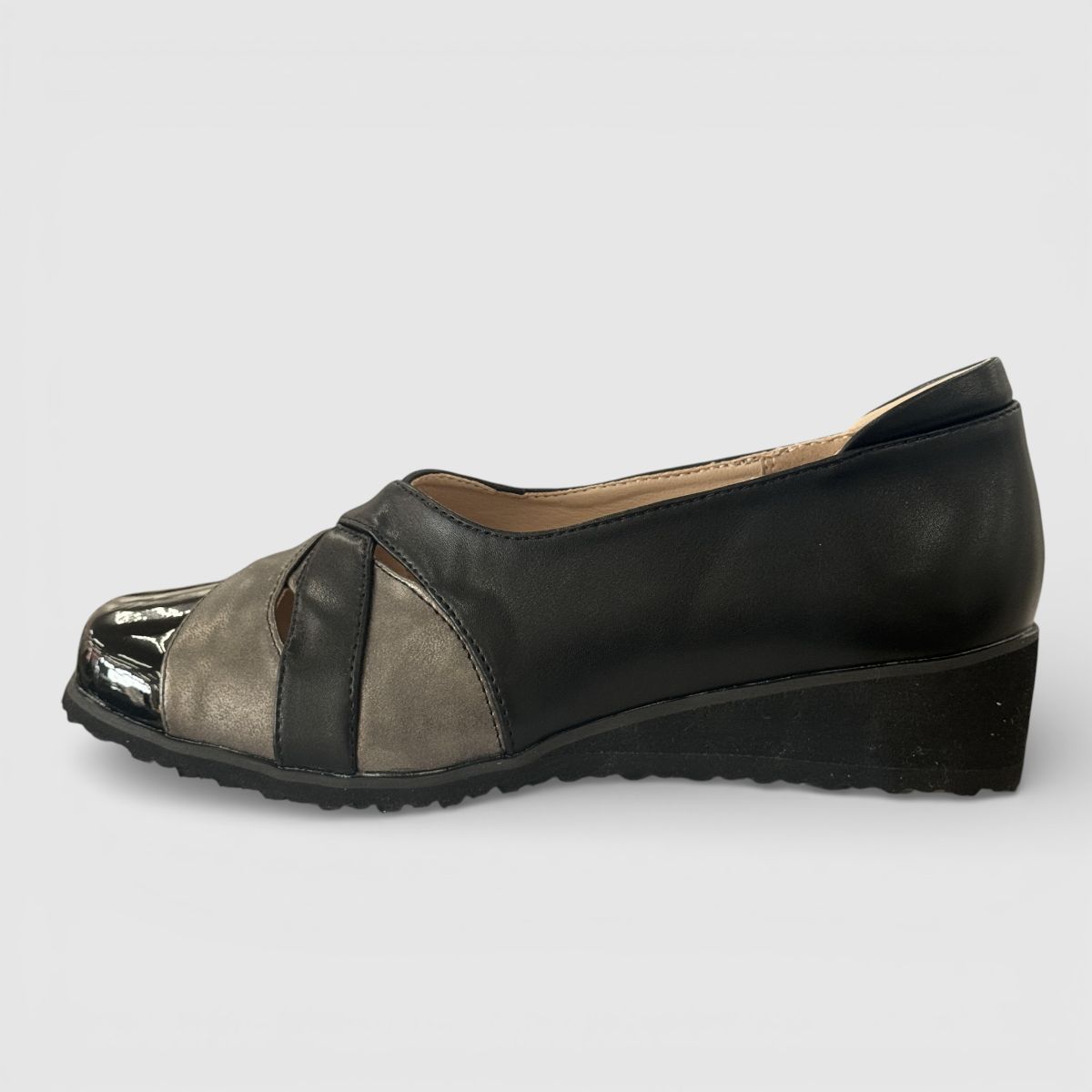 カラー:ブラック 商品名:5E軽量配色使いパンプス