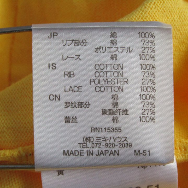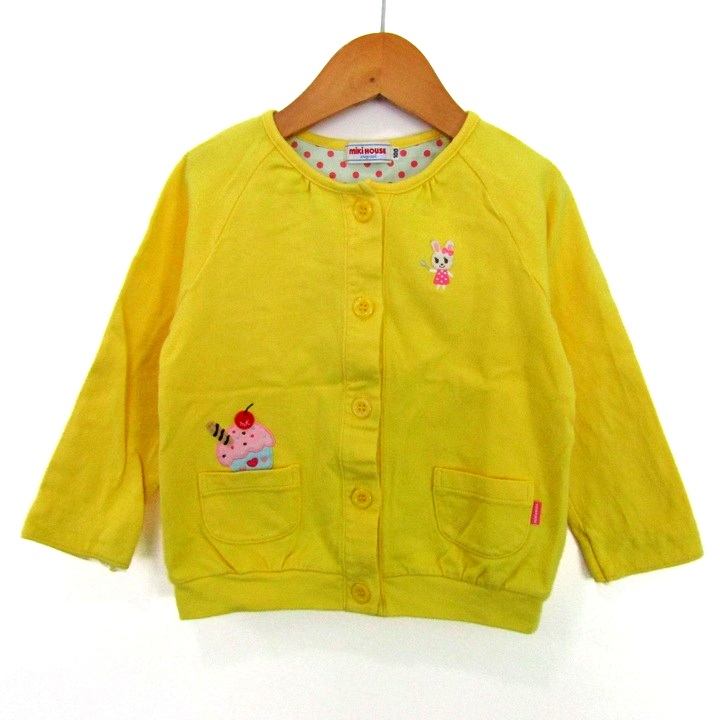 ミキハウス オリジナル カーディガン トップス キッズ 女の子用 100サイズ イエロー MIKIHOUSE 【中古】
