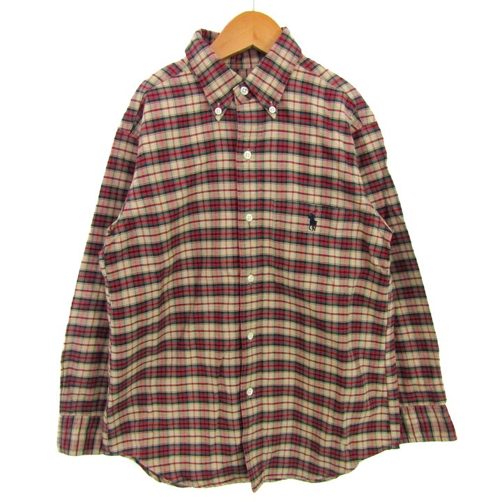 ポロバイラルフローレン 長袖シャツ チェック トップス 記名有 キッズ 男の子用 140サイズ ベージュ/レッド Polo by Ralph Lauren 【中古】
