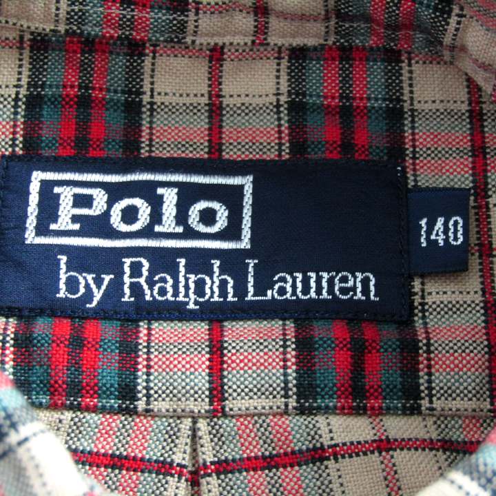 ポロバイラルフローレン 長袖シャツ チェック トップス 記名有 キッズ 男の子用 140サイズ ベージュ/レ...