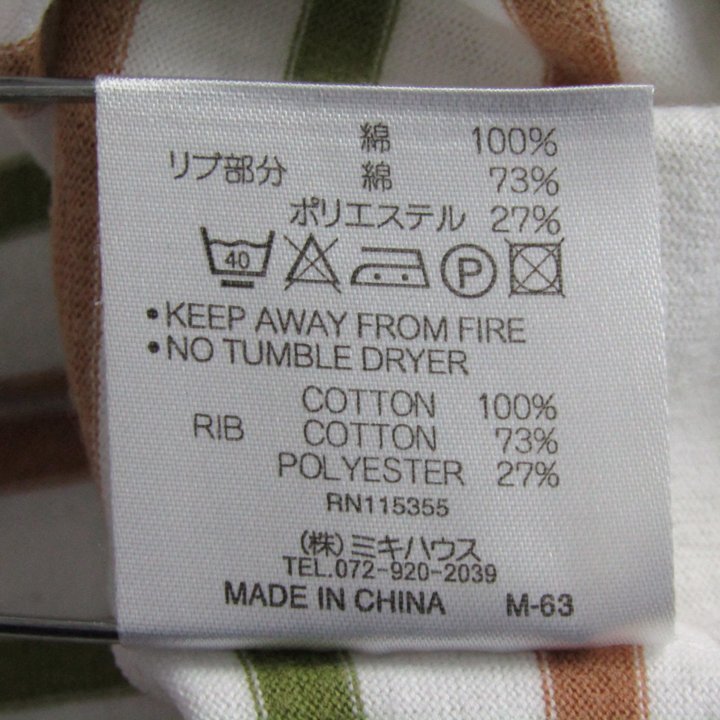 ミキハウス オリジナル カットソー ボーサー シャツ トップス 男の子 キッズ 女の子用 100サイズ ホワイ...