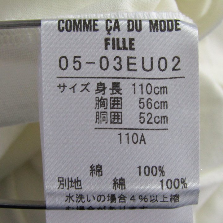 コムサ・デ・モード カットソー シャツ リボン 裾フリル トップス 日本製 キッズ 女の子用 110Aサイズ ホワイト COMME CA DU MODE 【中古】