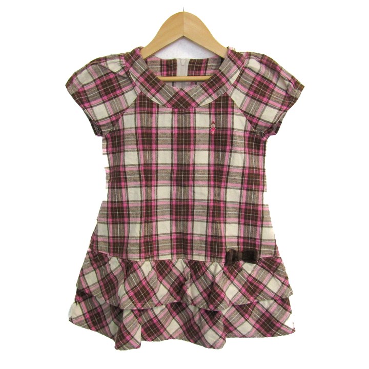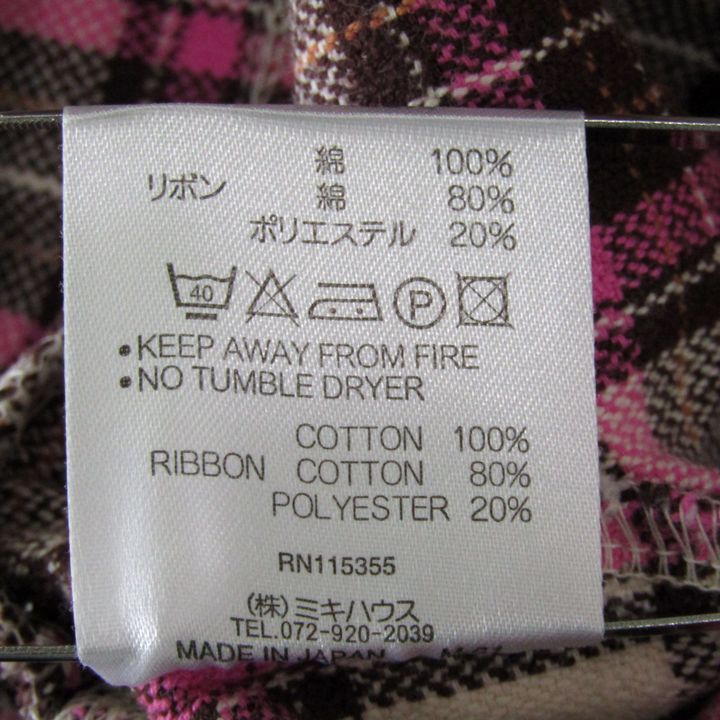 ミキハウス チュニック シャツ フリル トップス キッズ 女の子用 120サイズ ピンク/ブラウン MIKIHOUSE ...