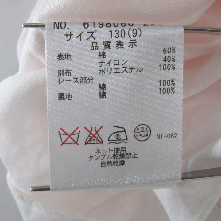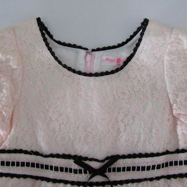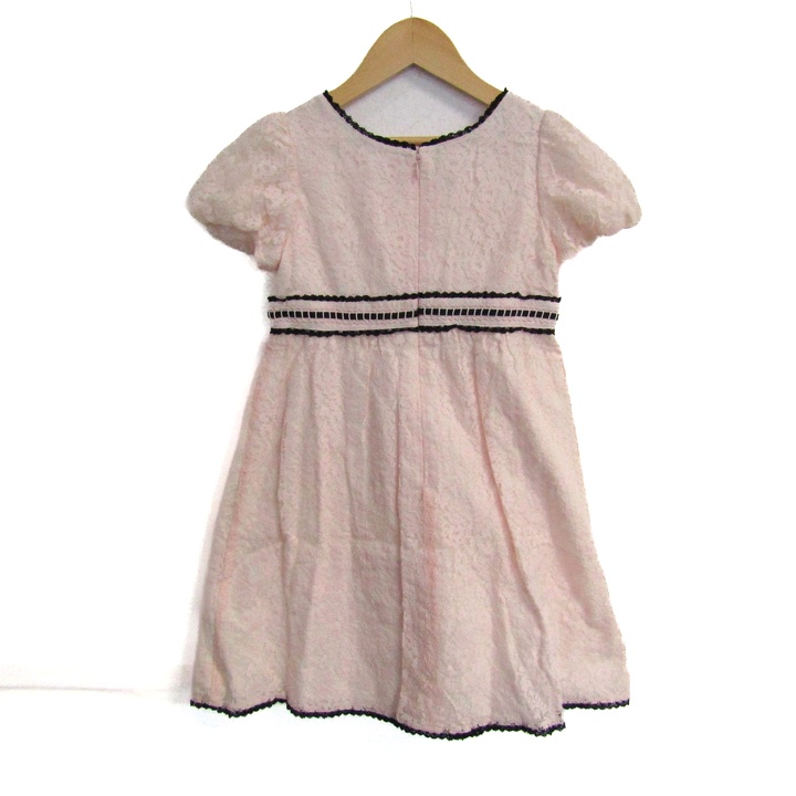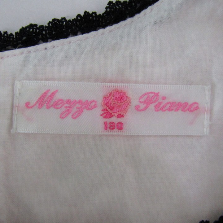 メゾピアノ ワンピース パフスリーブ リボン トップス キッズ 女の子用 130サイズ ピンク/ホワイト/ブラック Mezzo Piano 【中古】