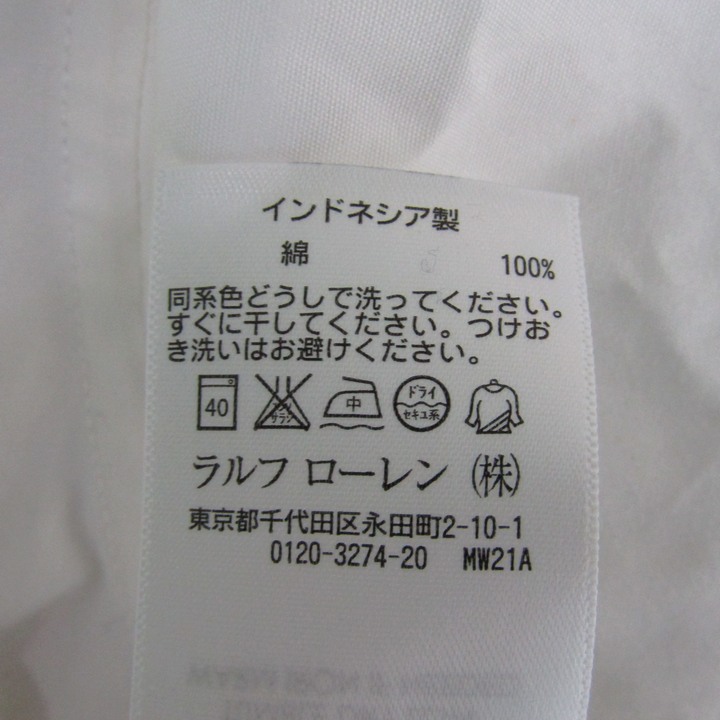 ポロバイラルフローレン 長袖シャツ 無地 カッターシャツ トップス キッズ 男の子用 6サイズ ホワイト P...