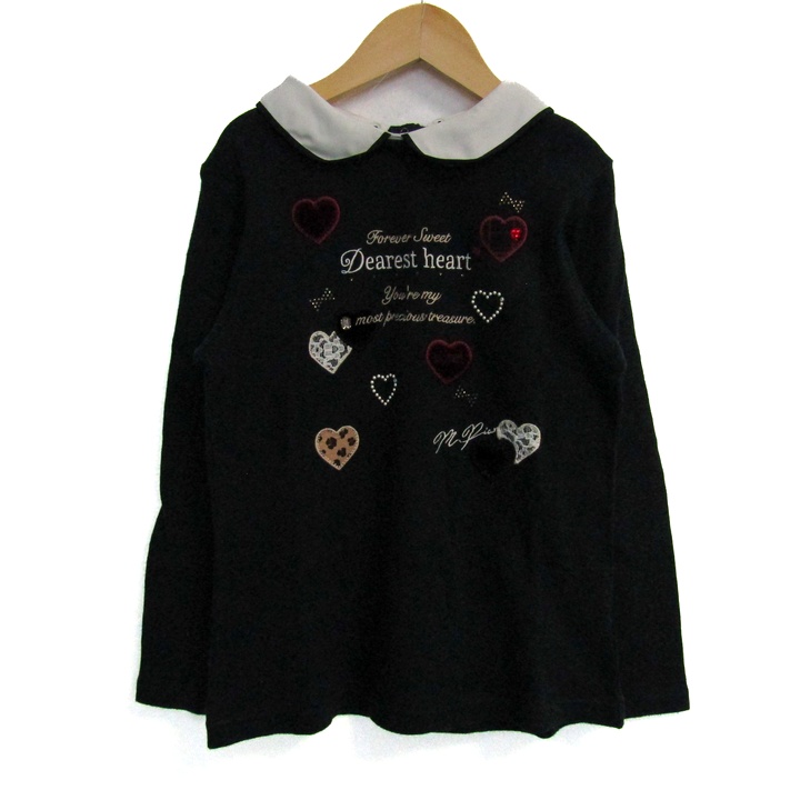 メゾピアノ Junior 長袖シャツ フリル ラインストーン トップス キッズ 女の子用 Sサイズ ブラック/ホワ...