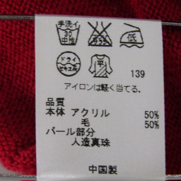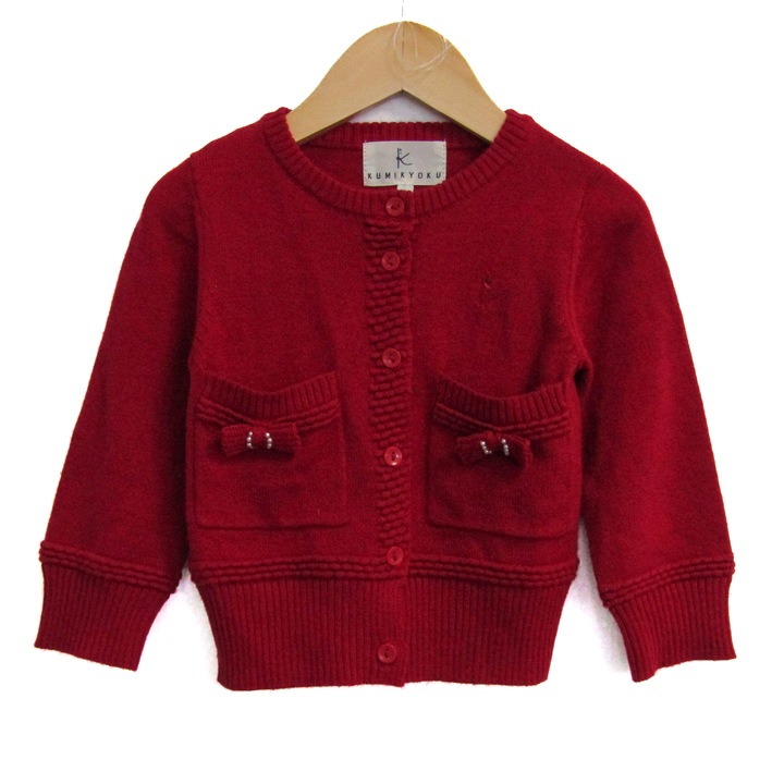 組曲 カーディガン リボン ウール混 トップス キッズ 女の子用 100サイズ レッド KUMIKYOKU 【中古】