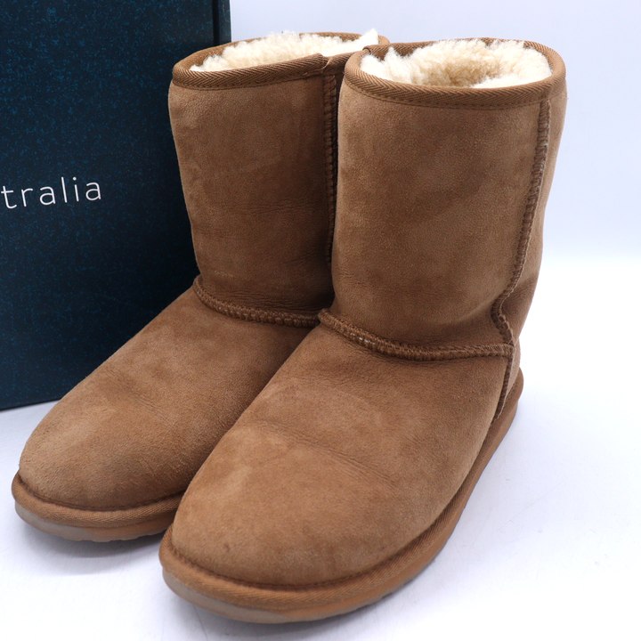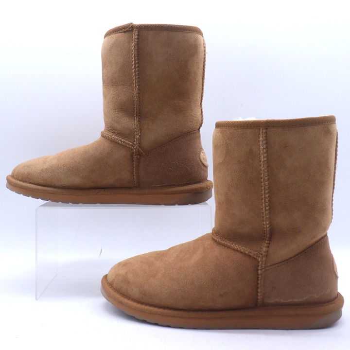 エミュー ムートンブーツ 裏ボア 防水 ブランド シューズ 靴 レディース W8/M7サイズ キャメル EMU Australia 【中古】
