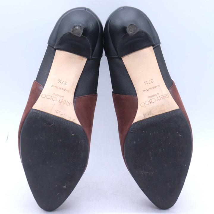 ジミーチュウ サイドゴアブーツ シューズ ブランド 靴 イタリア製 レディース 37.5サイズ ブラック×ブラウン JIMMY CHOO 【中古】