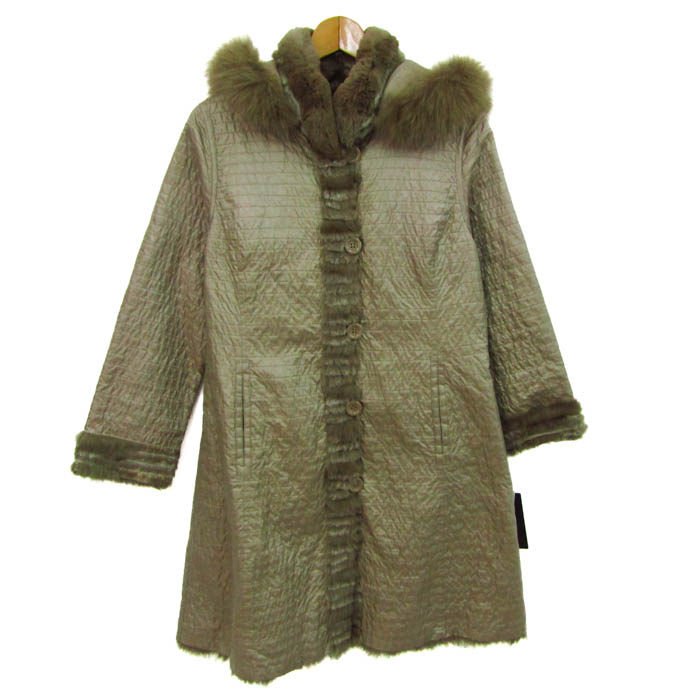 ベルサフィーナ ロングコート フーデッドコート アウター ラビットファー 未使用品 レディース Mサイズ グリーン Bellesafeena 【中古】