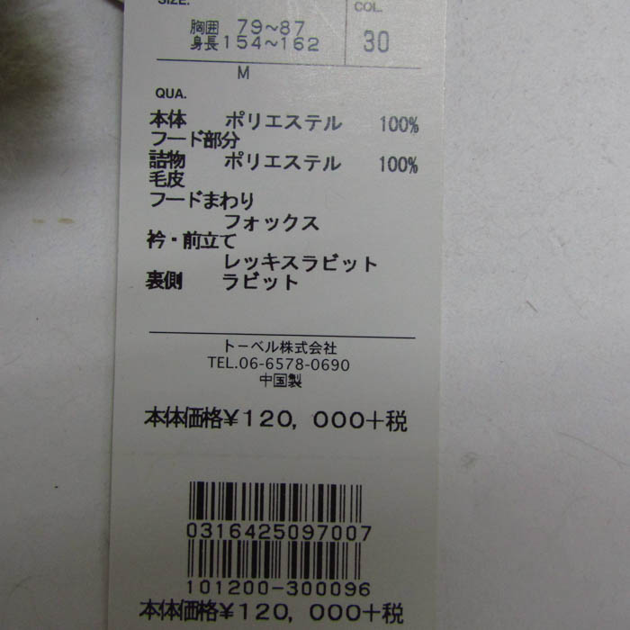 ベルサフィーナ ロングコート フーデッドコート アウター ラビットファー 未使用品 レディース Mサイズ ...