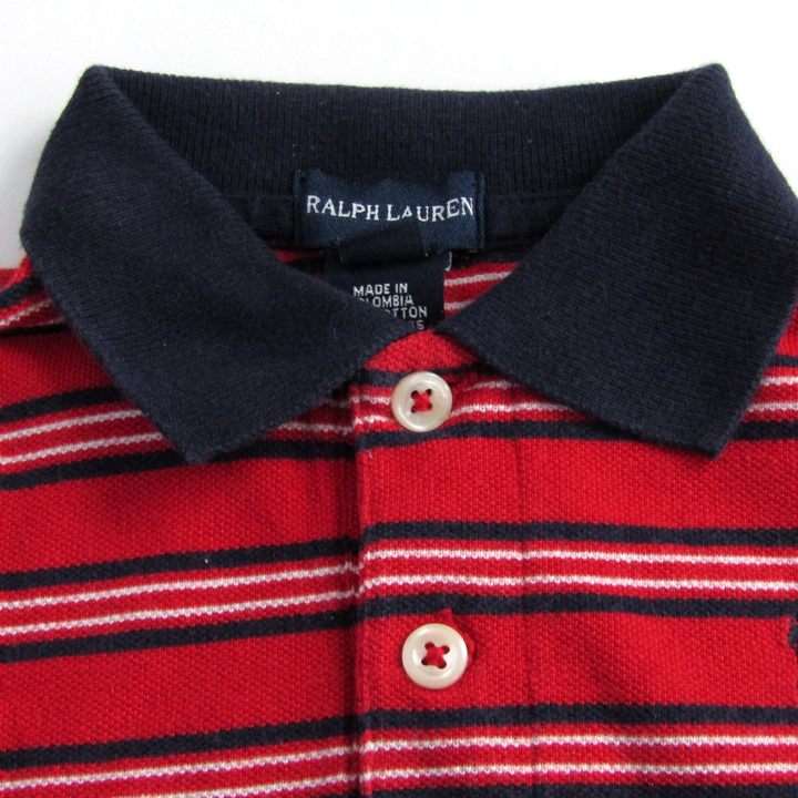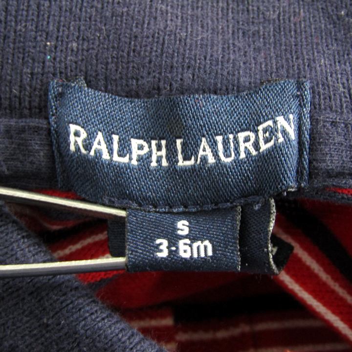ラルフローレン ツナギ つなぎ オールインワン ロンパース 半袖ポロ ベビー 男の子用 S(3-6m)サイズ 赤×紺×白 RALPH LAUREN 【中古】