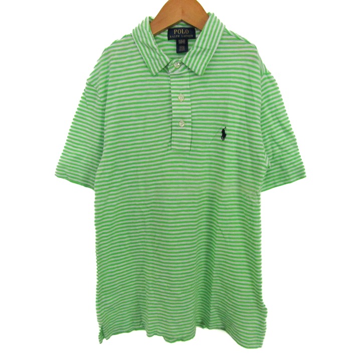 ポロラルフローレン ポロシャツ トップス 半袖 ボーダー柄 キッズ 男の子用 M(10-12)サイズ 緑×白 POLO RALPH LAUREN 【中古】