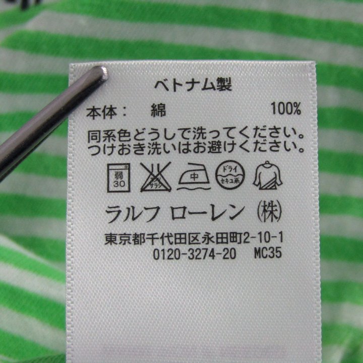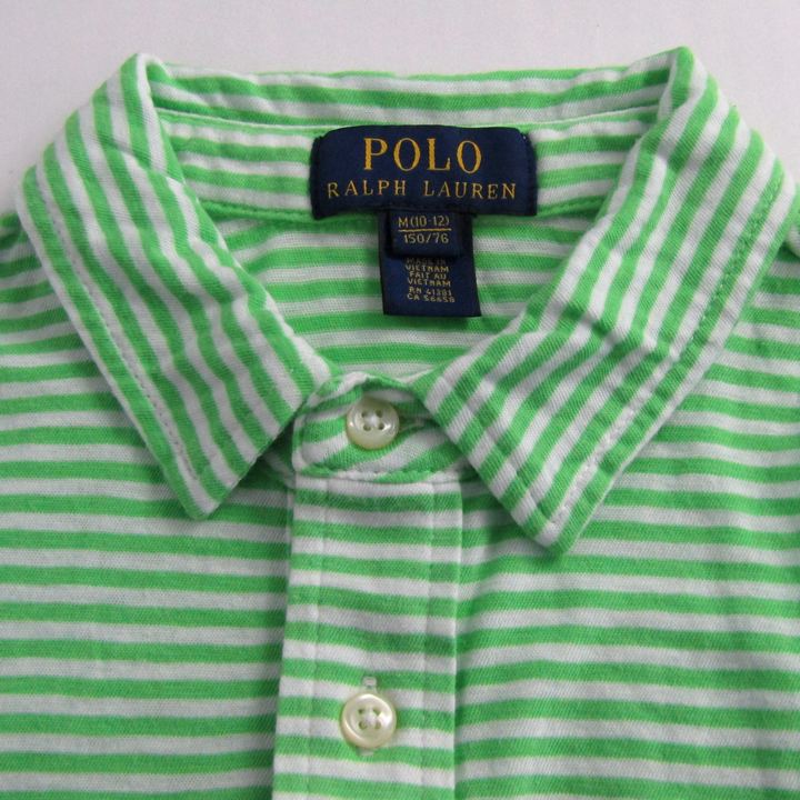 ポロラルフローレン ポロシャツ トップス 半袖 ボーダー柄 キッズ 男の子用 M(10-12)サイズ 緑×白 POLO ...