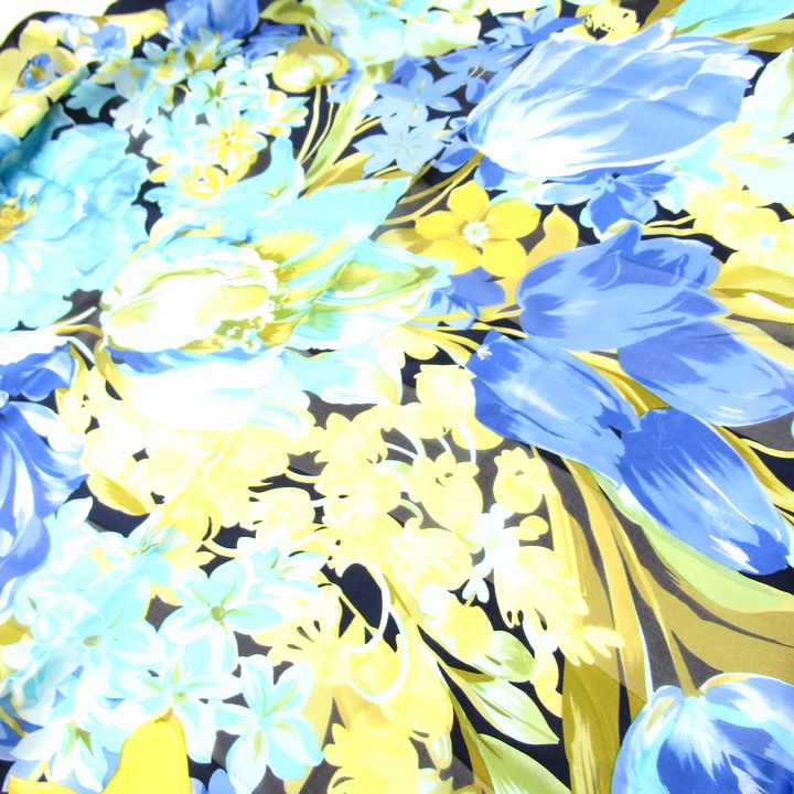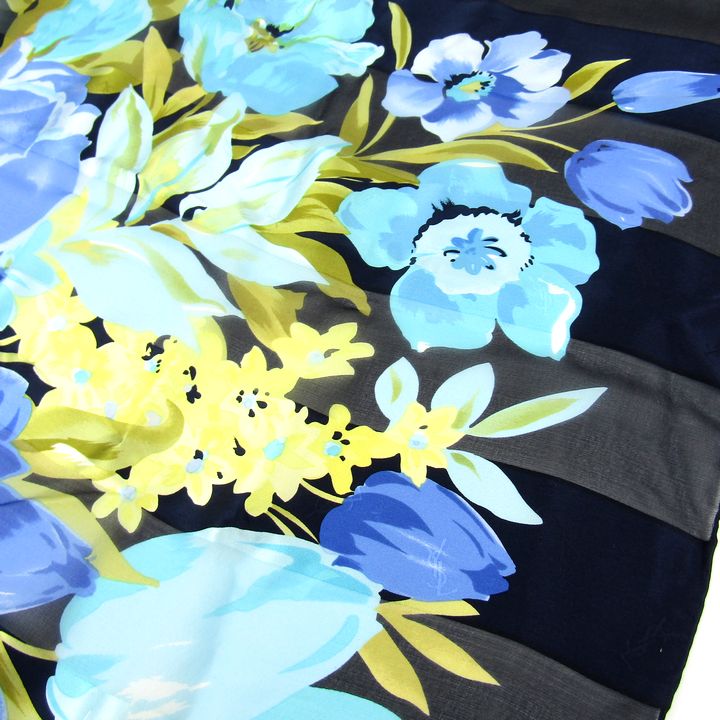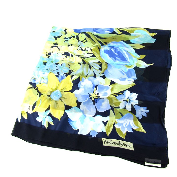 イヴ・サンローラン スカーフ フローラル 花柄 シルク ブランド 小物 レディース ネイビー YVES SAINT LAURENT 【中古】