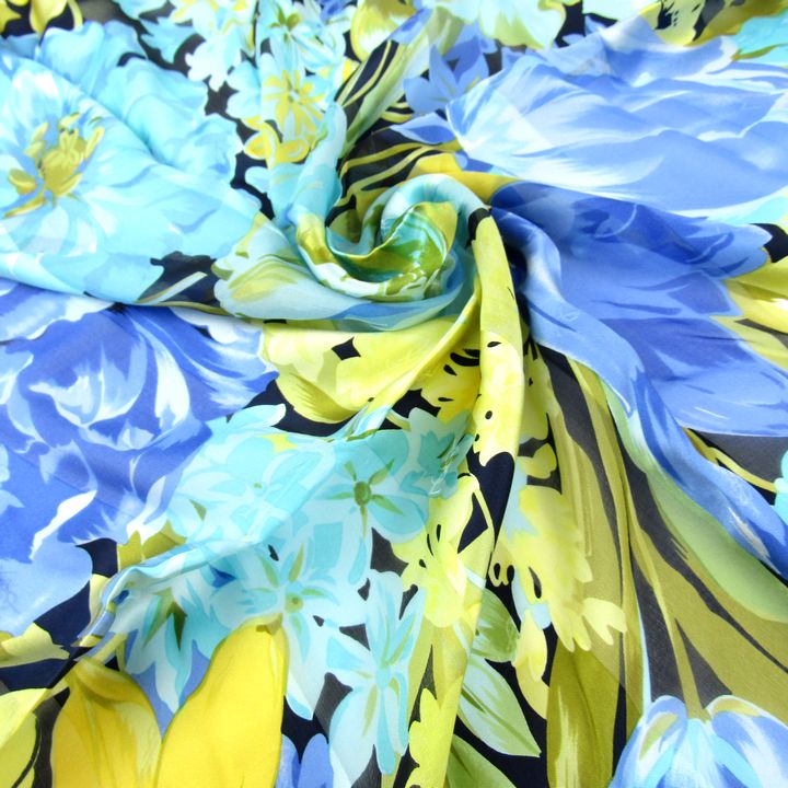 イヴ・サンローラン スカーフ フローラル 花柄 シルク ブランド 小物 レディース ネイビー YVES SAINT L...