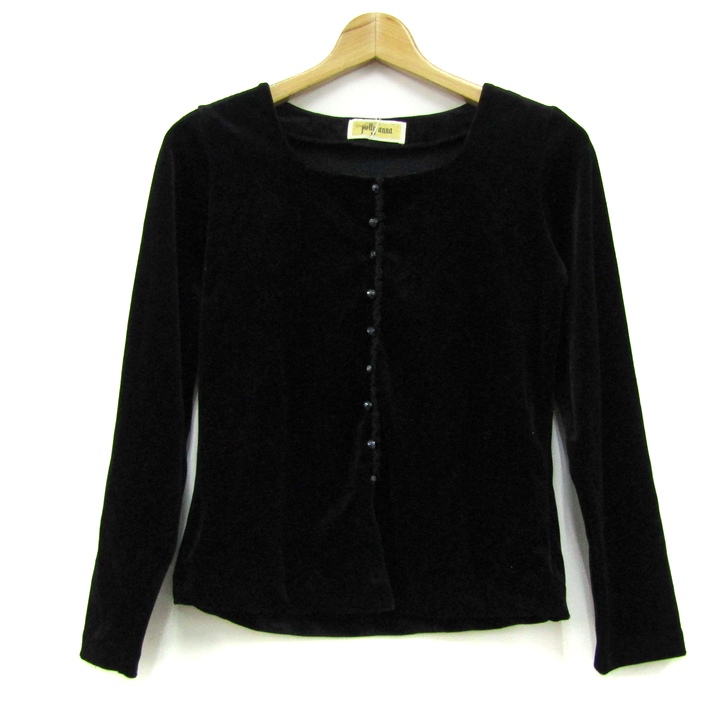 ポリアンナ 長袖Tシャツ トップス ハーフボタン カットソー 日本製 未使用品 レディース Mサイズ ブラック Pollyanna 【中古】