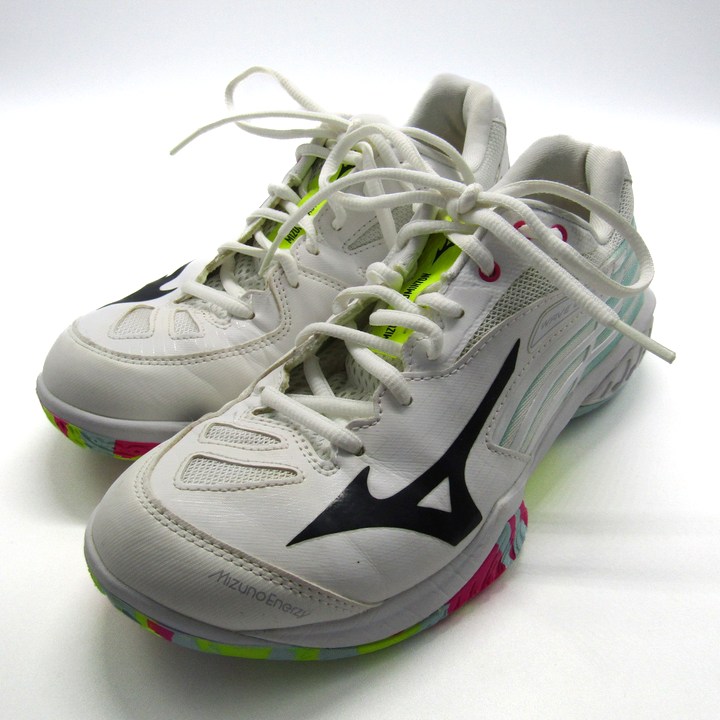 ミズノ スニーカー ローカット ウエーブクロー バトミントンシューズ 靴 白 レディース 23.5サイズ ホワ...