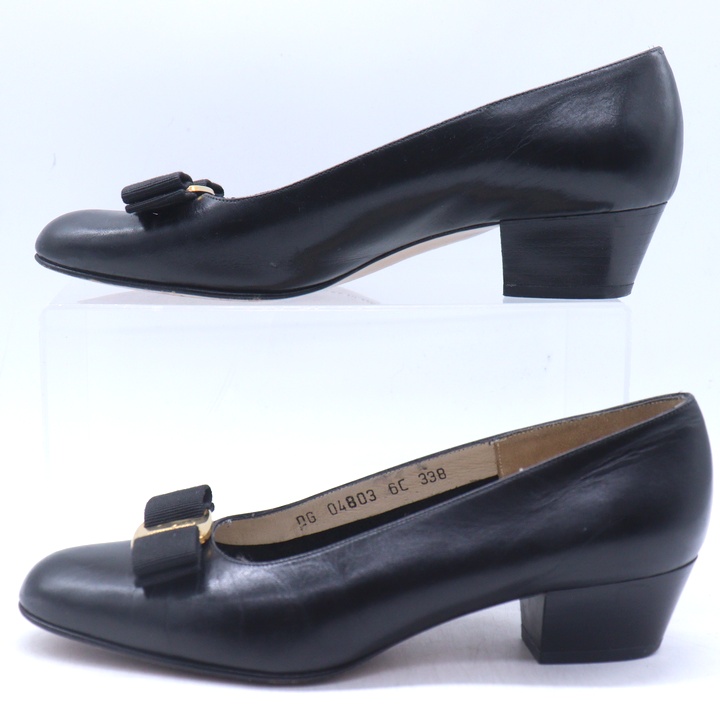 サルヴァトーレフェラガモ パンプス ヴァラリボン シューズ 靴 イタリア製 黒 レディース 6Cサイズ ブラ...