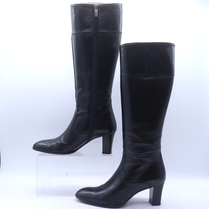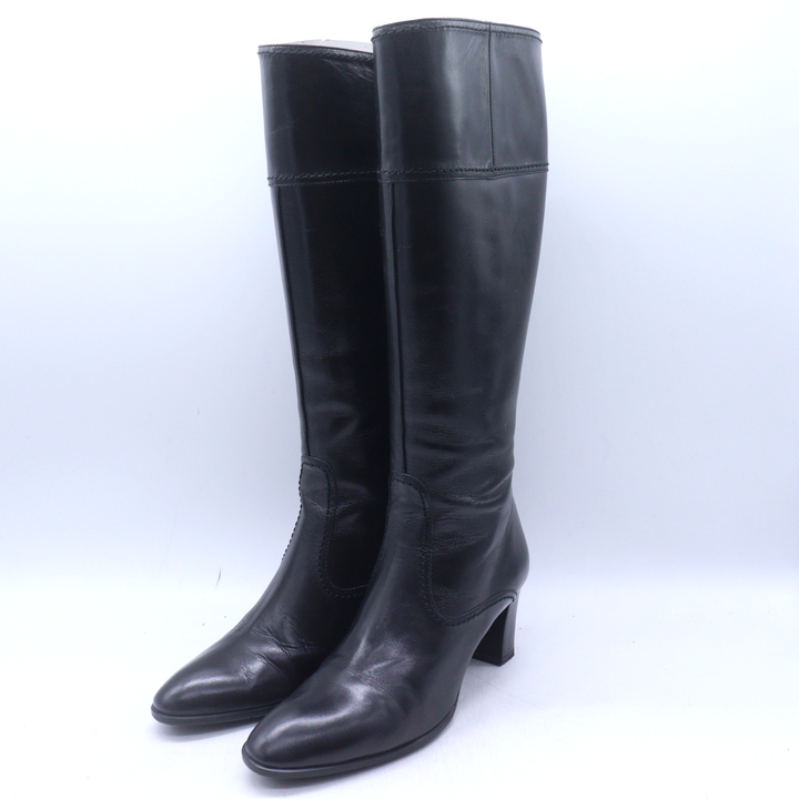 トラサルディ ロングブーツ チャンキーヒール ブランド シューズ 靴 日本製 黒 レディース 23.5サイズ ブラック TRUSSARDI 【中古】