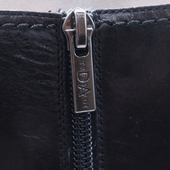 トラサルディ ロングブーツ チャンキーヒール ブランド シューズ 靴 日本製 黒 レディース 23.5サイズ ...