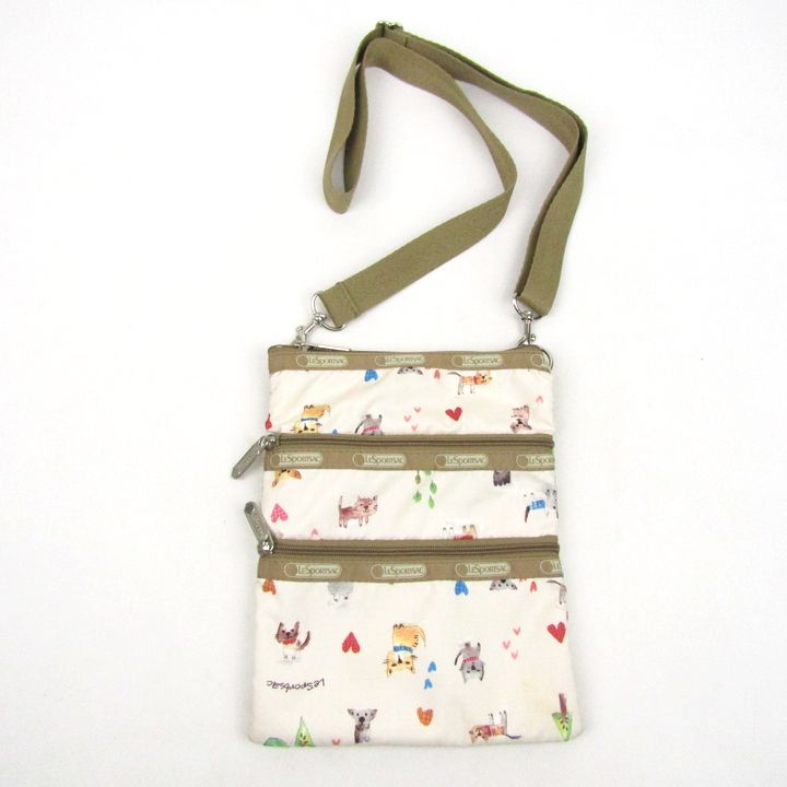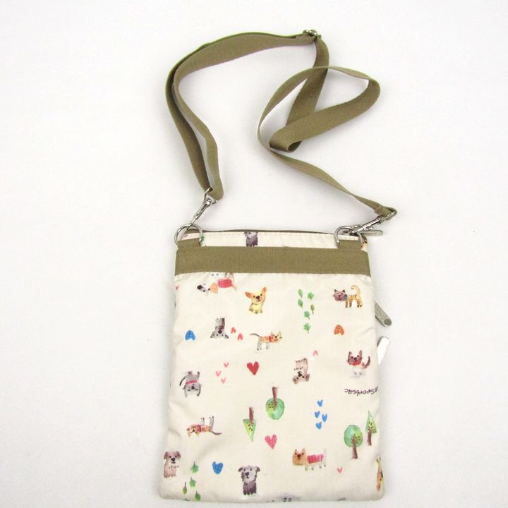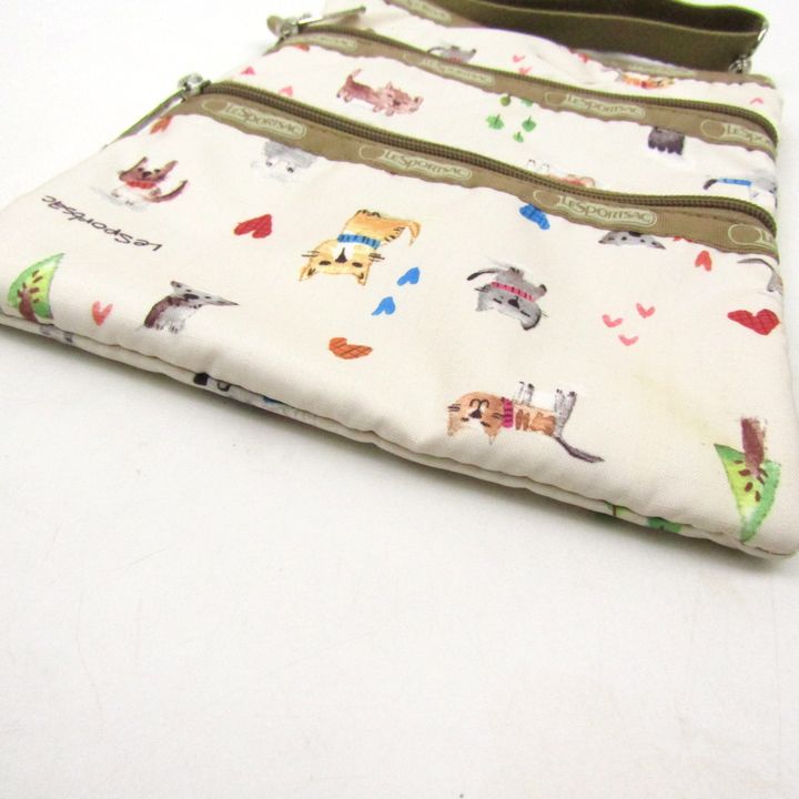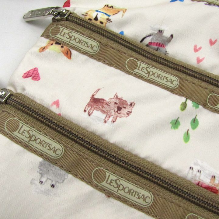 レスポートサック ショルダーバッグ ねこ いぬ 動物柄 鞄 ブランド レディース ベージュ LeSportsac 【中古】