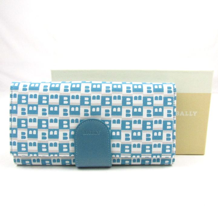 バリー 長財布 ロゴ 総柄 小銭入れ有り ウォレット ブランド レディース ブルー BALLY 【中古】