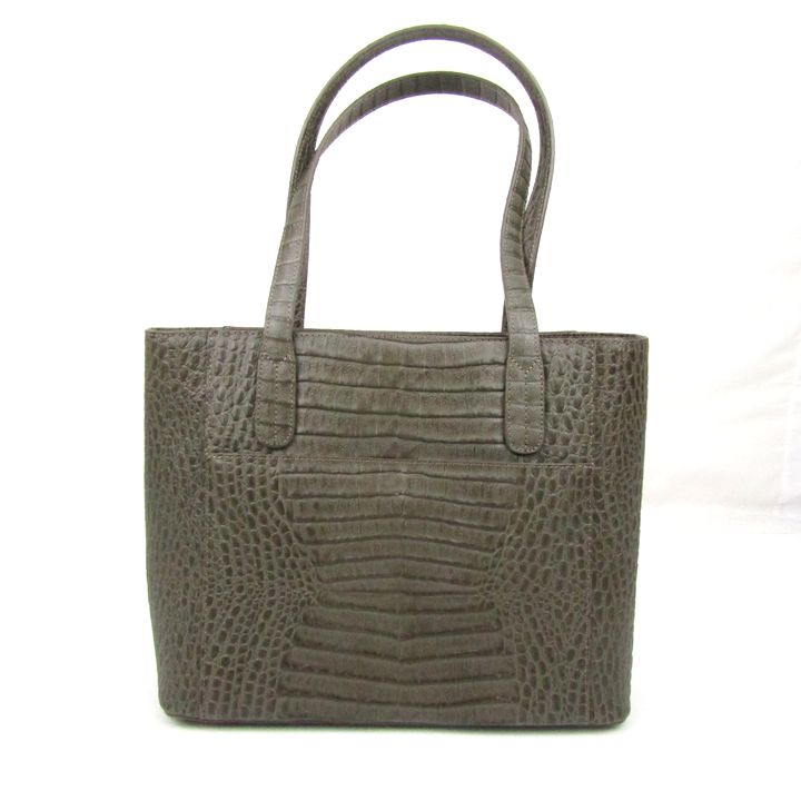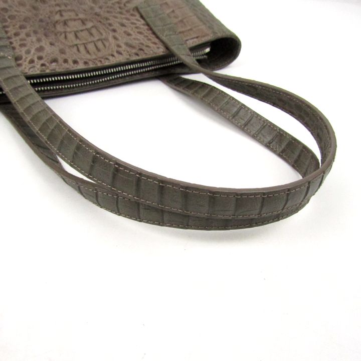 クロコダイル リアルレザー トートバッグ ショルダーバッグ 本革 鞄 カバン レディース グレージュ CROCODILE 【中古】