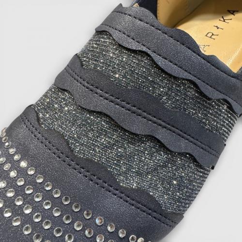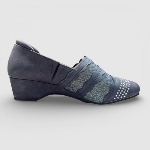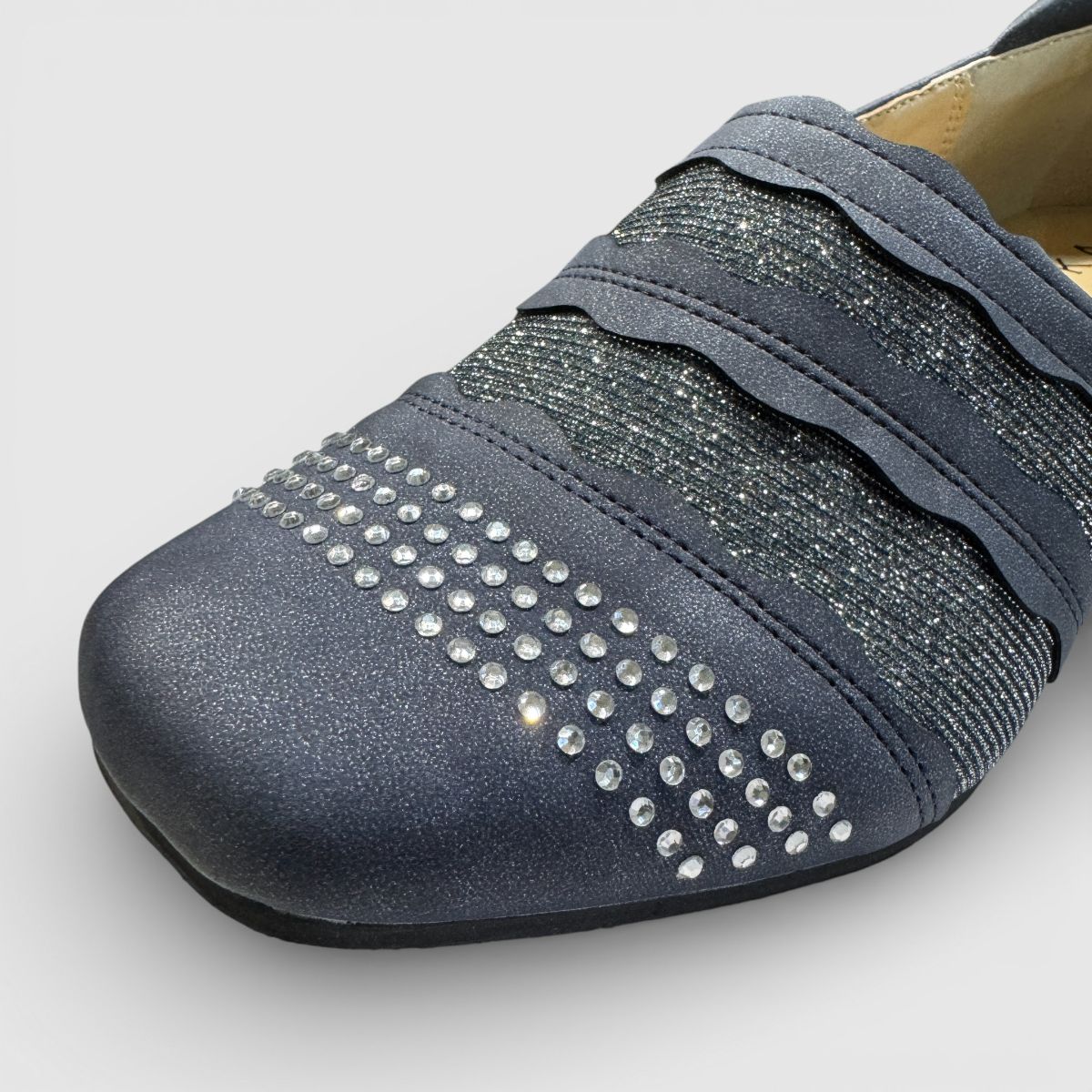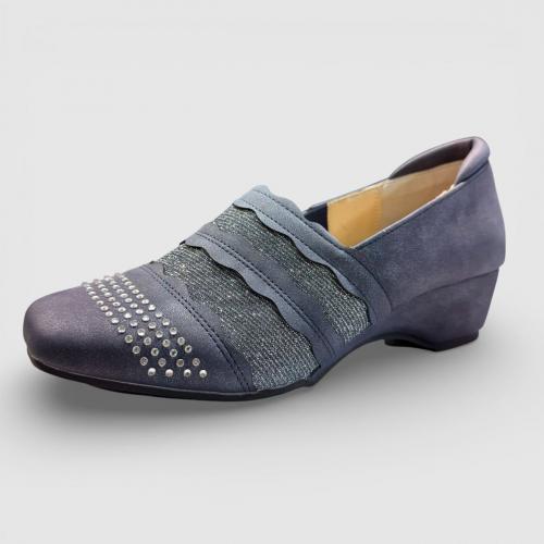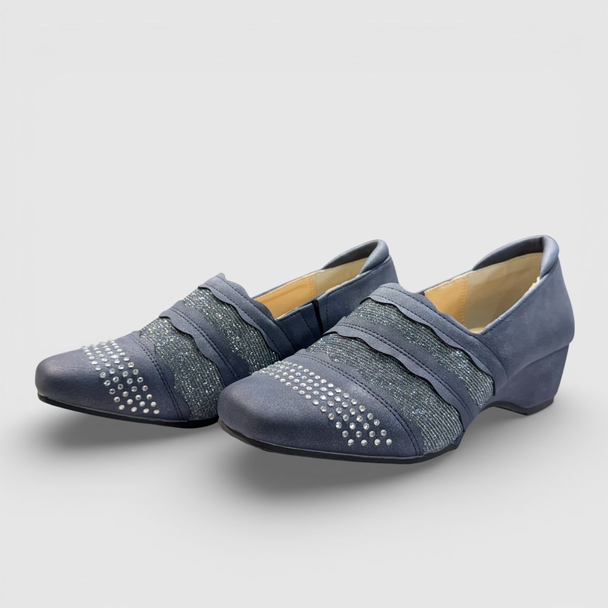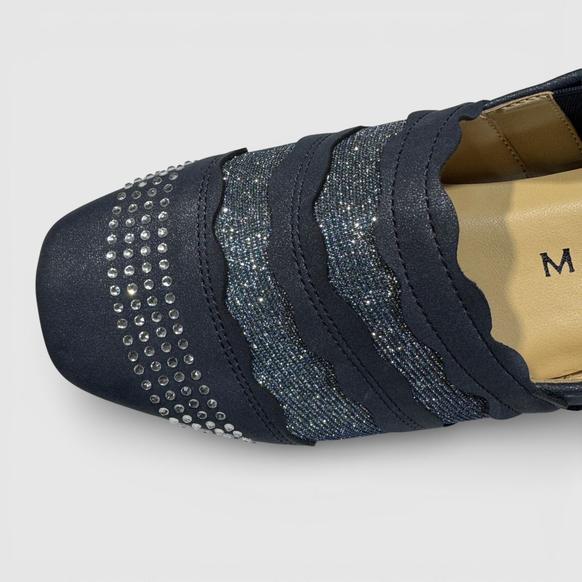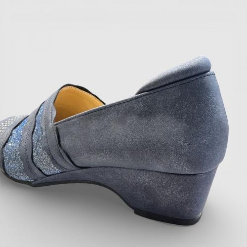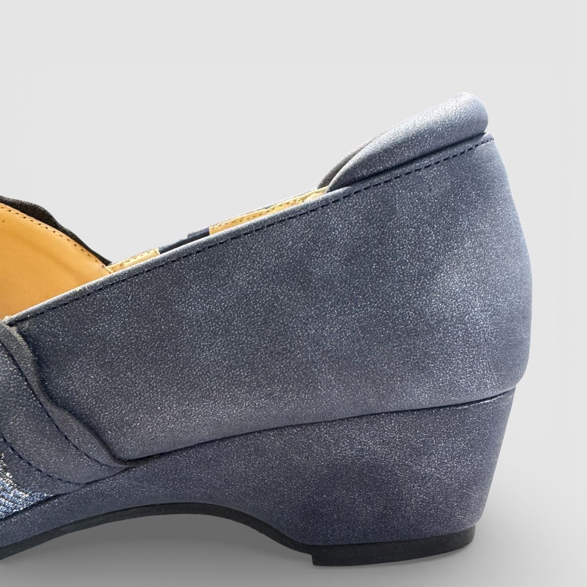 カラー:ネイビー 商品名:4Eラメ使いウエッジパンプス