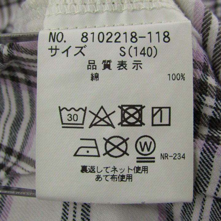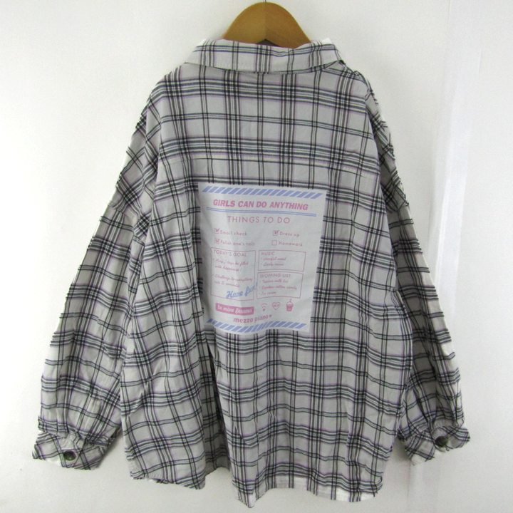 メゾピアノ 長袖シャツ コットン ジュニア ブランド トップス キッズ 女の子用 140サイズ ホワイト×うす紫×ブラック Mezzo Piano 【中古】