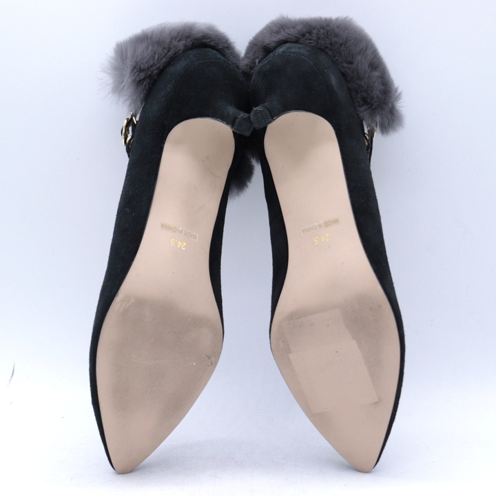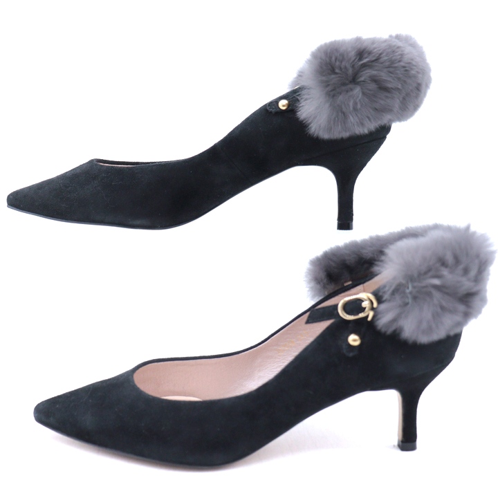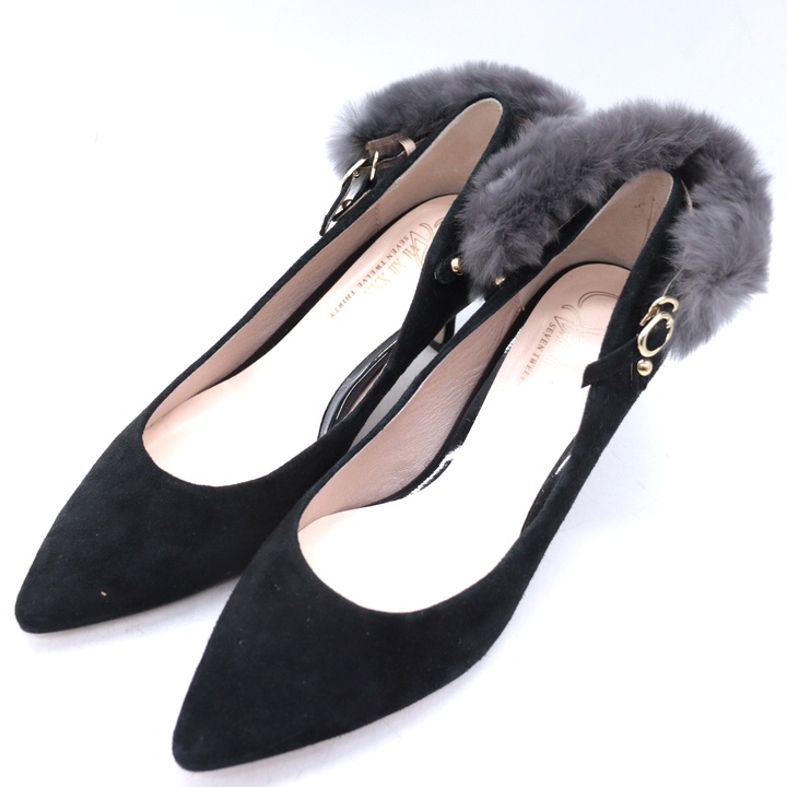 セブントゥエルブサーティ パンプス スウェード ファー シューズ ブランド 靴 黒 レディース 24.5サイズ...
