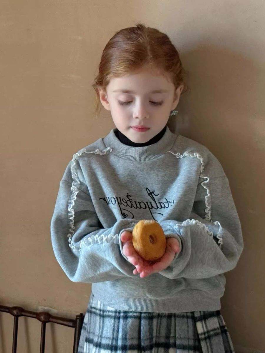 ■コメント・袖のフリルデザインが可愛いスウェットトレーナー。・厚すぎないスウェット生地なので、春秋冬とロングシーズン着回し可能。・ふんわりフレアシルエットが女の子可愛い。・日常にはもちろん、特別なお出かけやショッピングにも◎。■サイズ(単位:約cm)画像に記載■カラー画像の通り■素材綿100%■伸縮性なし■裏地なし■生地の厚さ普通■透け感なし