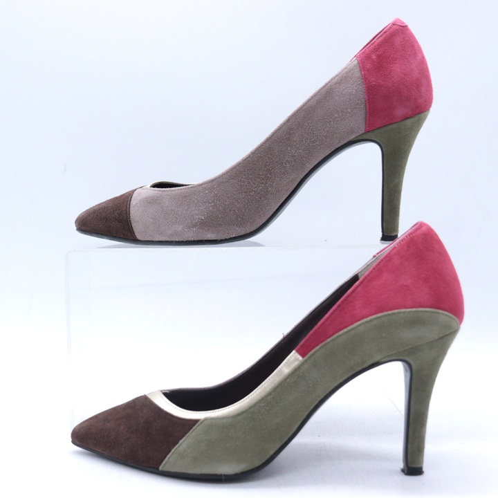 ダイアナ パンプス スウェード ブランド シューズ 靴 日本製 レディース 22.5サイズ ブラウン×グリーン×ピンク DIANA 【中古】